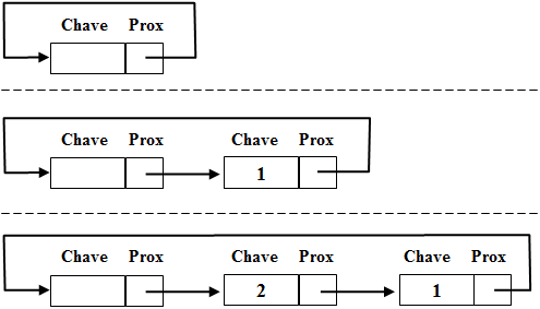 Observe que em ambas as situações o nó cabeça não é usado para armazenar valores.