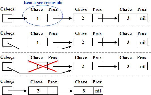 Quando o item a ser removido encontra-se na cabeça da lista, executamos os seguintes passos: