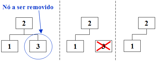 Nesse caso basta desviar o apontador que apontava para o nó a ser removido para a sua única subárvore. Por último, elimina-se o nó.